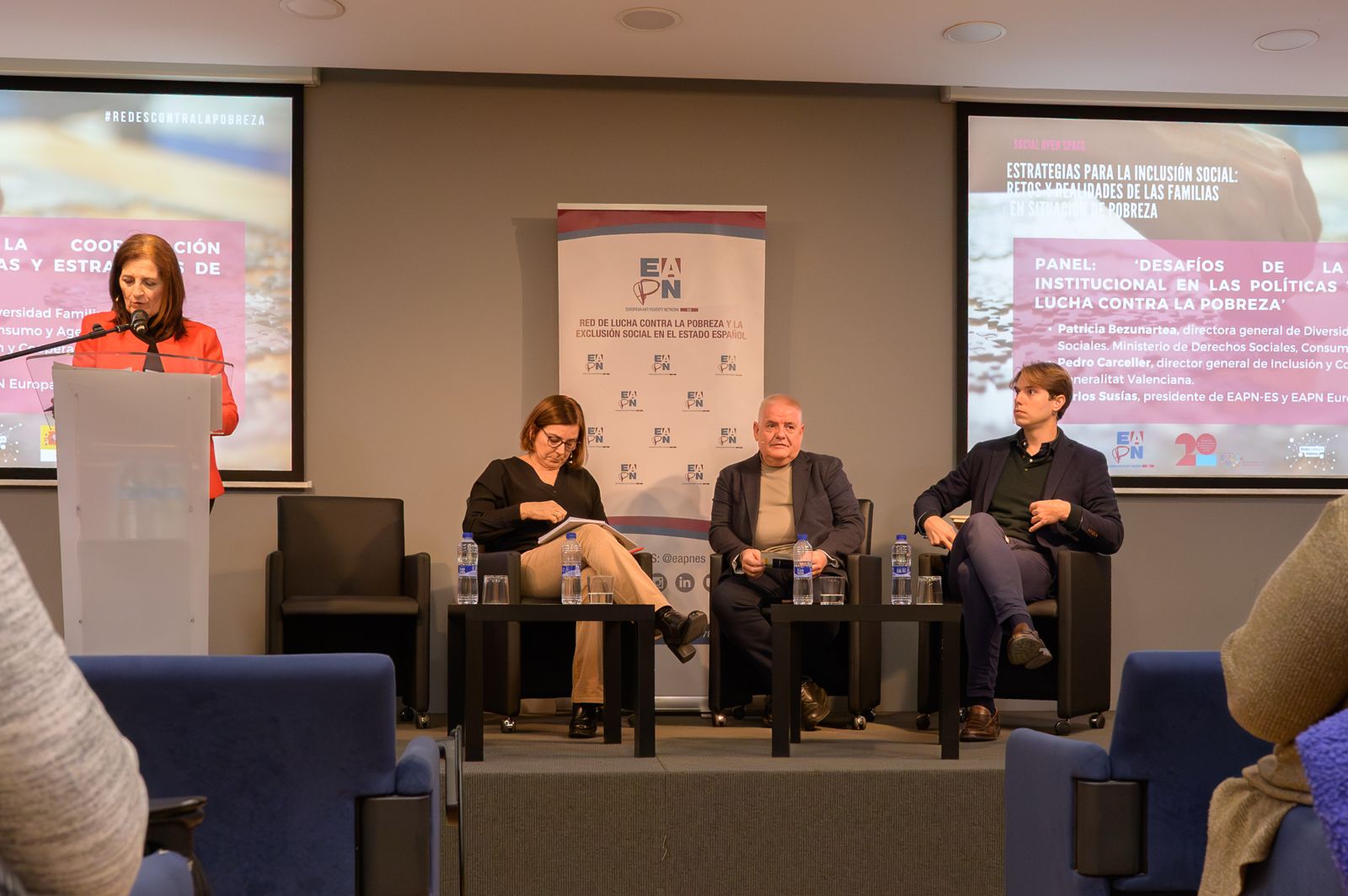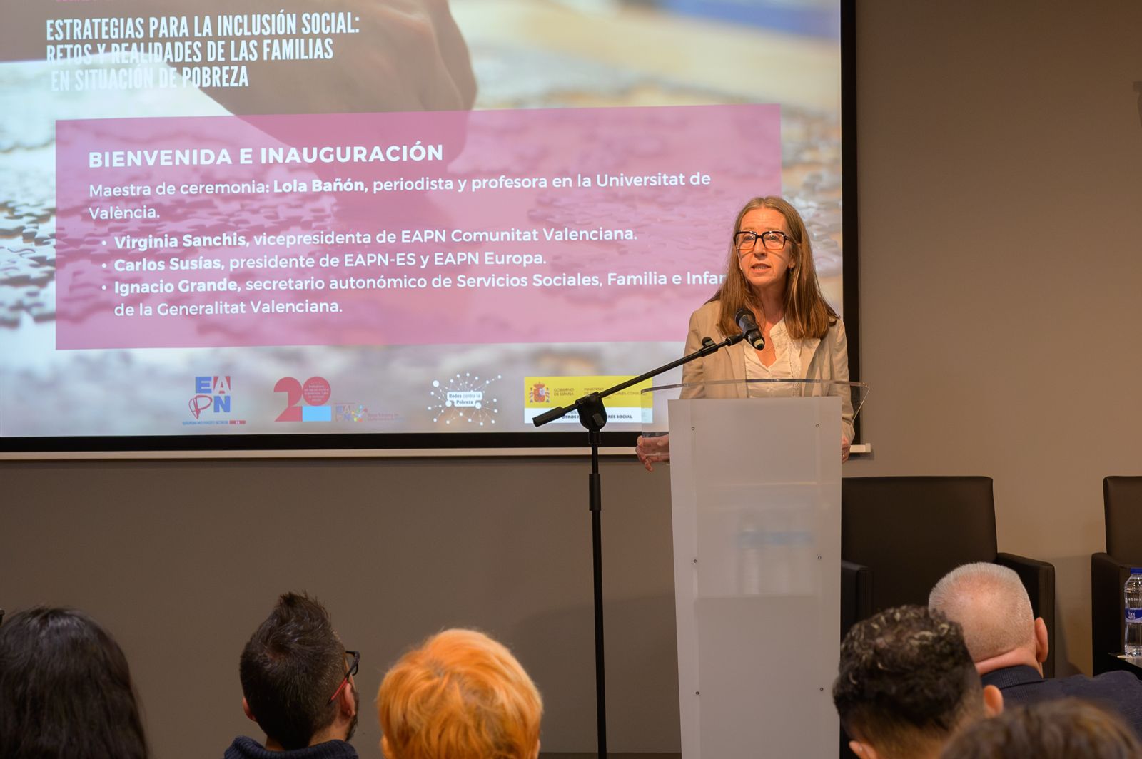 Intervinieron: Patricia Bezunartea, directora General de Diversidad Familiar y Servicios Sociales, Ministerio de Derechos Sociales, Consumo y Agenda 2030; Pedro Carceller, director General de Inclusión y Cooperación al Desarrollo, Generalitat Valenciana; Virginia Sanchis, vicepresidenta de EAPN Comunitat Valenciana; y Carlos Susías, presidente de EAPN-ES y EAPN Europa. Además Inmaculada Herranz, profesora titular de Sociología, UCLM, presentó la ponencia marco 'La Estrategia Nacional de Lucha contra la Pobreza 2024-2030: retos y oportunidades para las familias en riesgo de pobreza'.