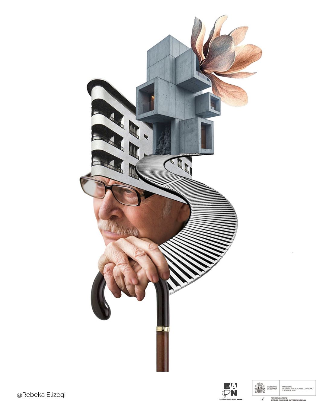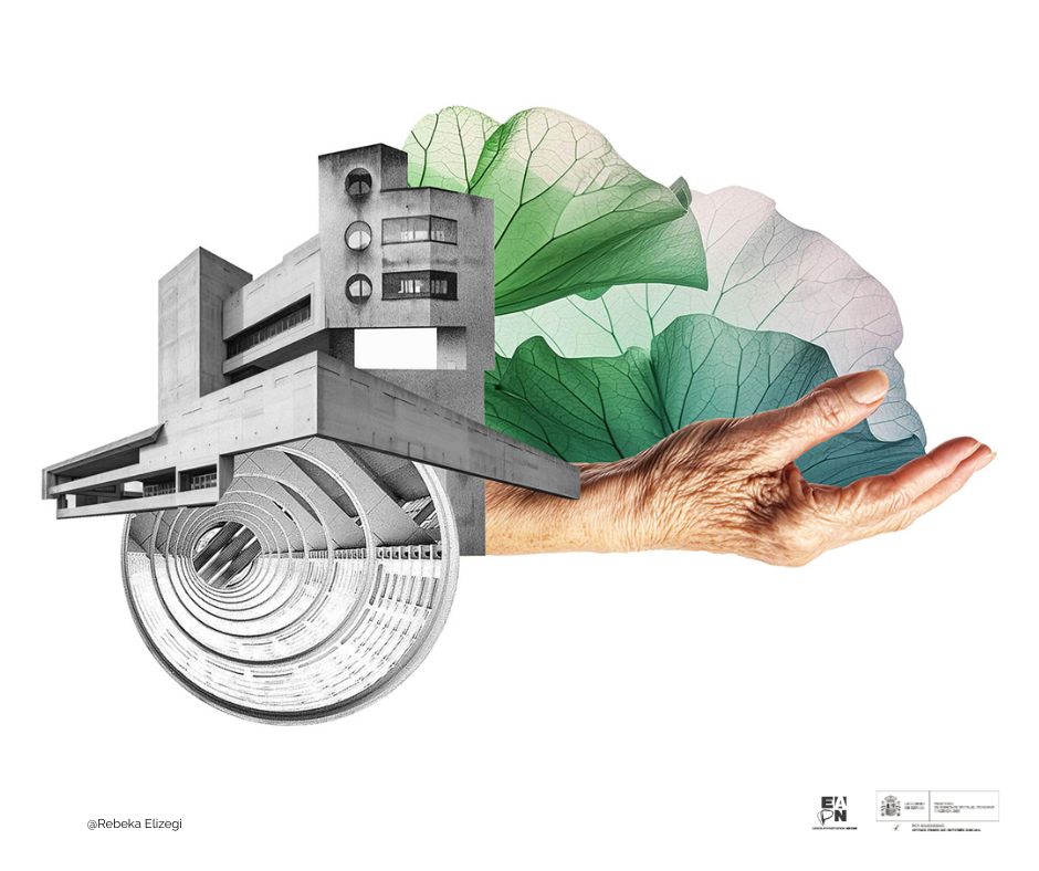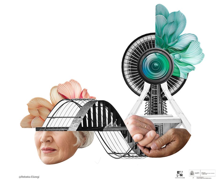 La artista visual y diseñadora gráfica barcelonesa, Rebeka Elizegi, ha diseñado varios collage para ilustrar las conclusiones de la Investigación participativa ‘Envejecimiento, servicios de apoyo comunitarios y entornos inclusivos’de EAPN-ES, que pone el foco en las dificultades de acceso de las personas mayores en riesgo de pobreza a entornos inclusivo y a sistemas de cuidados de calidad.