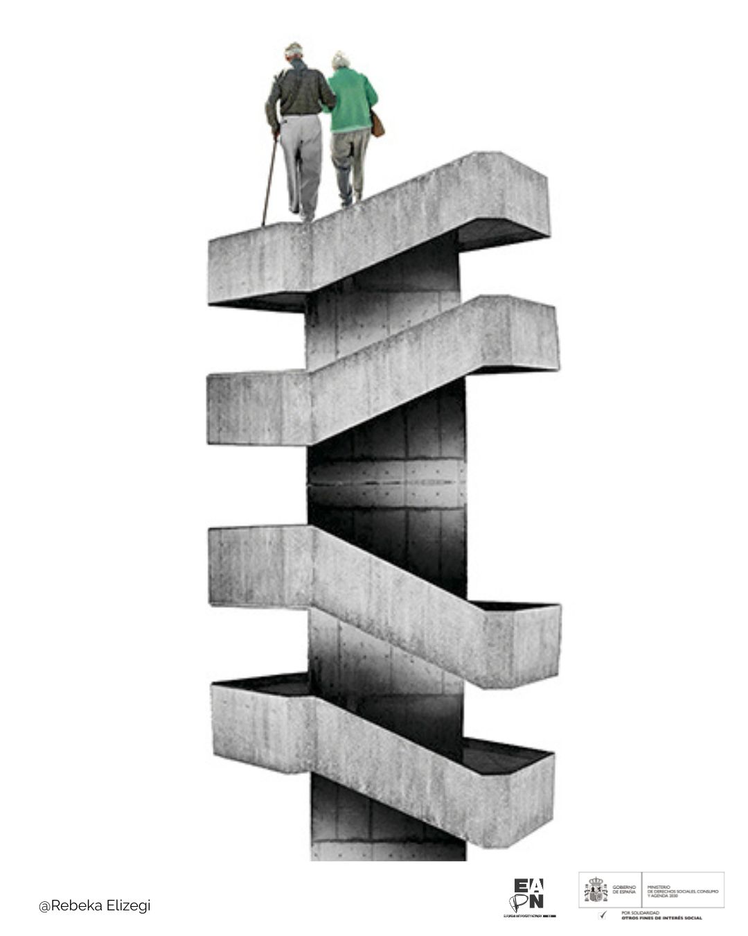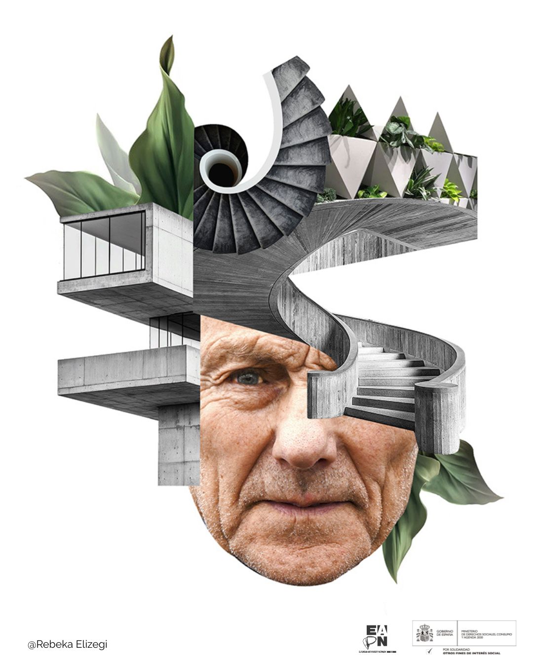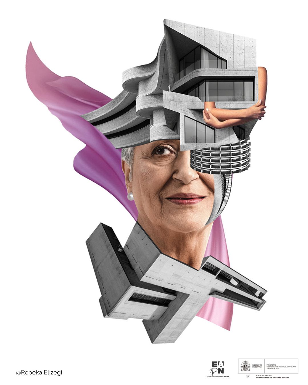 La artista visual y diseñadora gráfica barcelonesa, Rebeka Elizegi, ha diseñado varios collage para ilustrar las conclusiones de la Investigación participativa ‘Envejecimiento, servicios de apoyo comunitarios y entornos inclusivos’de EAPN-ES, que pone el foco en las dificultades de acceso de las personas mayores en riesgo de pobreza a entornos inclusivo y a sistemas de cuidados de calidad.